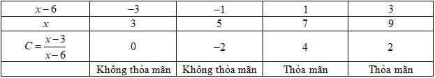 Cho biểu thức \(C = \dfrac{{x - 3}}{{x - 6}},\,\,x \in \mathbb{Z}\).