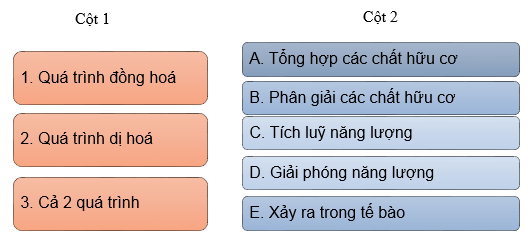 Nối cột 1 và cột 2 sao cho phù hợp.