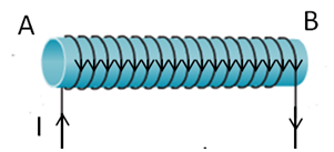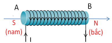 b) Xác định tên cực và chiều đường sức từ của ống dây trong hình bên: