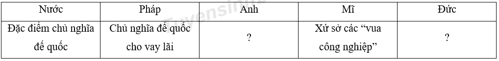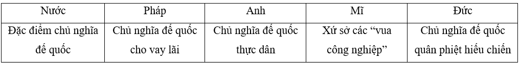 Lưu ý: Học sinh phải kẻ bảng vào bài làm của mình.