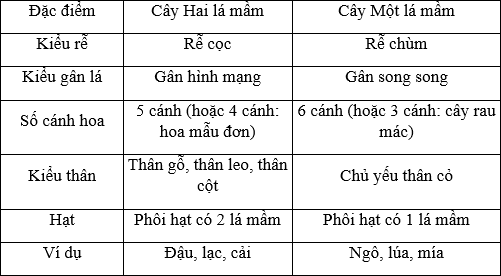 Phân biệt thực vật thuộc lớp một lá mầm và lớp hai lá mầm? Cho ví dụ?