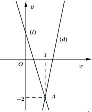 Cho điểm \(A\left( {a;\,\,b} \right)\) là giao điểm của hai đường thẳng \(\left( d \right)\) và \(\left( l \right)\) như hình vẽ: