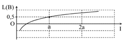 Hình bên là đồ thị biểu diễn sự phụ thuộc của mức cường độ âm L theo cường độ âm