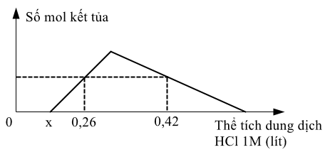 Quan sát đồ thị ta thấy phải cho 1 lượng x mol HCl vào mới bắt đầu xuất hiện kết tủa