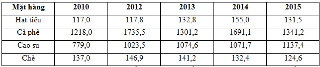 Căn cứ vào bảng số liệu, cho biết nhận xét nào sau đây đúng về một số mặt hàng xuất khẩu của nước ta giai đoạn 2010 – 2015