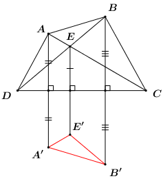 Cho tứ giác\(ABCD\) . Hai đường chéo \(AC\) và \(BD\) cắt nhau tại\(E\) . Xác định ảnh của