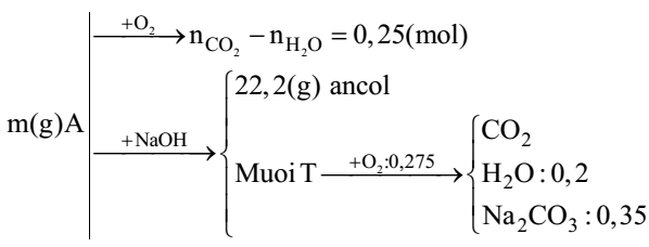 Đốt cháy hoàn toàn m gam hỗn hợp A gồm 3 este X, Y, Z (đều mạch hở và chỉ chứa chức este, Z chiếm phần trăm khối lượng lớn nhất trong A) thu được lượng CO2 lớn hơn H2O là 0,25 mol. Mặt khác, m gam A phản ứng vừa đủ với dung dịch NaOH thu được 22,2 gam 2 ancol hơn kém nhau 1 nguyên tử cacbon và hỗn hợp T gồm 2 muối. Đốt cháy hoàn toàn T cần vừa đủ 0,275 mol O2 thu được CO2, 0,35 mol Na2CO3 và 0,2 mol H2O. Phần trăm khối lượng của Z trong A là