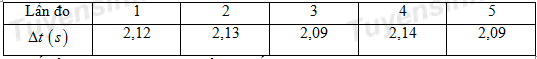 Một học sinh dùng đồng hồ bấm giây để đo chu kì dao động điều hoà của một con lắc lò xo. Sau 5 lần đo, xác định được khoảng thời gian ∆t của mỗi dao động toàn phần như sau: