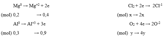 - Nhận xét: sự thay đổi số oxi hóa của các nguyên tố Cl0 → Cl-1, O0 → O-2, Mg0 → Mg+2; Al0 → Al+3