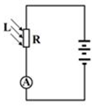 Trên hình vẽ, bộ pin có suất điện động \(9\,\,V\), điện trở trong \(1\,\,\Omega \); A là ampe kế hoặc miliampe kế có điện trở rất nhỏ; R là quang điện trở (khi chưa chiếu sáng giá trị là \({R_1}\) và khi chiếu sáng giá trị là \({R_2}\)) và L là chùm sáng chiếu vào quang điện trở. Khi không chiếu sáng vào quang điện trở thì số chỉ của miliampe kế là \(6\,\,\mu A\) và khi chiếu sáng thì số chỉ của ampe kế là \(0,6\,\,A\). Chọn kết luận đúng: