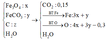 Cho hơi nước đi qua than nóng đỏ thu được hỗn hợp X gồm CO2, CO, H2, H2O. Dẫn X đi qua 38,28 gam hỗn hợp Fe3O4 và FeCO3 nung nóng thu được hơi nước, 6,72 lít CO2 (đktc) và chất rắn Y gồm Fe, FeO, Fe3O4. Chia Y thành 2 phần bằng nhau: