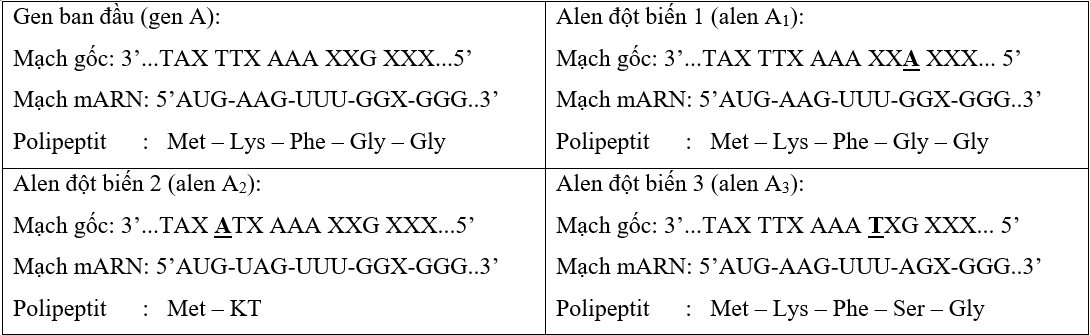 II. Các phân tử mARN được tổng hợp từ alen A2 và alen A3 có các côđon bị thay đổi kể từ điểm xảy ra đột biến.