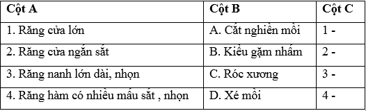 Ghép cột A vào cột B và ghi kết quả vào cột