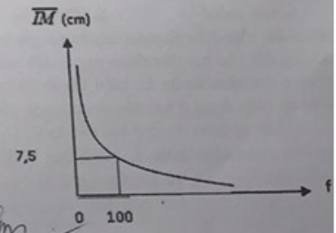 Thí nghiệm giao thoa sóng với hai nguồn kết hợp S1S2 cùng pha trên mặt nước. Gọi I là trung điểm của S1S2. M là giao điểm của đoạn thẳng S1S2 với vân cực đại thứ 3 tính từ trung trực của hai nguồn. Thay đổi tần số f của sóng, ta được khoảng cách từ I đến M phụ thuộc vào tần số f như hình vẽ. Tính tốc độ truyền sóng trong môi trường nước khi này.