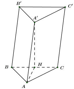 Cho hình lăng trụ tam giác \(ABC.A'B'C'\) có độ dài cạnh bên bằng \(a\sqrt 7 \), đáy \(ABC\) là