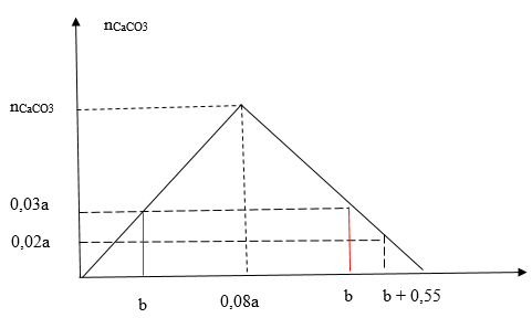 Tại V + 12,32 lít CO2 có sự hòa tan kết tủa: nCO2 = nCaCO3 + 2nCa(HCO3)2