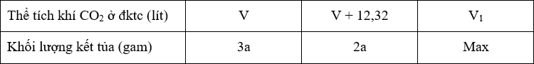 Hấp thụ hoàn toàn khí CO2 vào dung dịch có chứa 0,08a mol Ca(OH)2, khối lượng kết tủa tạo ra phụ thuộc vào thể tích khí CO2 được ghi ở bảng sau: