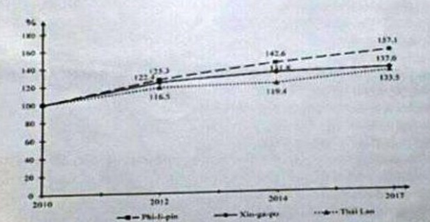 Cho biểu đồ về GDP của Phi-lip-pin, Xi-ga-po và Thái Lan qua các năm: