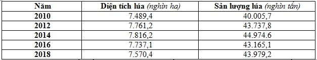 DIỆN TÍCH VÀ SẢN LƯỢNG LÚA CỦA NƯỚC TA GIAI ĐOẠN 2010-2018
