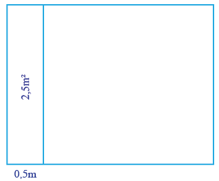 Nếu vẽ đáy bể thứ hai lên trên đáy bể thứ nhất như hình bên thì ta thấy \(2,5{m^2}\) ấy chính là diện tích một hình chữ nhật có cạnh là \(0,5m\), còn cạnh kia chính là cạnh của đáy bể hình vuông. Vậy cạnh đáy bể hình vuông là: