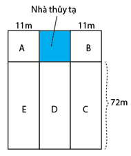 Phần hồ nước còn lại gồm 5 hình chữ nhật A, B, C, D, E. Trong đó diện tích hai phần C, E là: