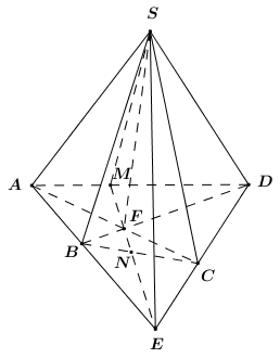 Trong mp \(\left( \alpha \right)\), cho tứ giác \(ABCD\) có \(AB\) cắt \(CD\) tại \(E\), \(AC\) cắt \(BD\) tại \(F\), \(S\) là điểm không thuộc \(\left( \alpha \right)\). Gọi \(M,\,\,N\) lần lượt là giao điểm của \(EF\) với \(AD\) và \(BC\). Giao tuyến của \(\left( {SEF} \right)\) với \(\left( {SAD} \right)\) là: