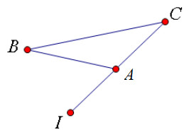 Cho tam giác \(ABC\), lấy điểm \(I\) trên cạnh \(AC\) kéo dài (hình bên).