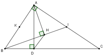Cho tam giác \(ABC\) vuông tại \(A\) có đường cao \(AD\,\left( {D \in BC} \right)\). Gọi \(I\) là trung