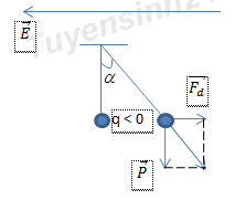 Gia tốc trọng trường hiệu dụng tác dụng lên con lắc: \(g' = \sqrt {{g^2} + {{\left( {\dfrac{{\left| q \right|E}}{m}} \right)}^2}} \)