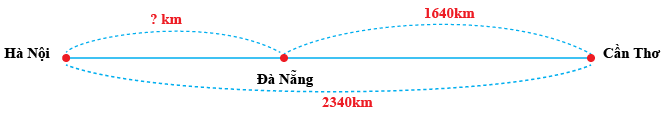 Quãng đường từ Cần Thơ đến Hà Nội dài 2340 km. Quãng đường từ Cần Thơ đến Đà Nẵng dài 1640 km. Tính quãng đường từ Đà Nẵng đến Hà Nội dài bao nhiêu ki-lô-mét?
