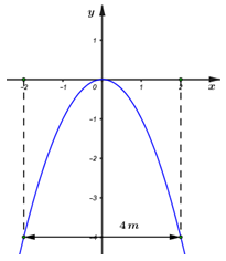 Cổng vào một ngôi biệt thự có hình dạng là một parabol được biểu diễn bởi đồ thị hàm số \(y = - {x^2}.\) Biết khoảng cách giữa hai chân cổng là \(4\,m.\) Một chiếc ô tô tải có thùng xe là một hình hộp chữ nhật có chiều rộng là \(2,4\,m.\) Hỏi chiều cao lớn nhất có thể của ô tô là bao nhiêu để ô tô có thể đi qua cổng?