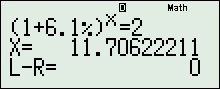 Một người gửi tiết kiệm vào một ngân hàng với lãi suất \(6,1\% /\)năm. Biết rằng nếu không rút tiền ra khỏi ngân hàng thì cứ sau mỗi năm số tiền lãi sẽ được nhập vào vốn để tính lãi cho năm tiếp theo. Hỏi sau ít nhất bao nhiêu năm người đó thu được (cả số tiền gửi ban đầu và lãi) gấp đôi số tiền gửi ban đầu, giả định trong khoảng thời gian này lãi suất không thay đổi và người đó không rút tiền ra?