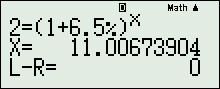 Một người gửi tiết kiệm với lãi suất \(6,5\% /\)năm và lãi hàng năm được nhập vào vốn. Hỏi khoảng bao nhiêu năm người đó thu được gấp đôi số tiền ban đầu?