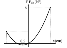 Một con lắc lò xo treo thẳng đứng gồm lò xo có độ cứng \(k = 100N/m\), vật treo có khối lượng \(m\). Chọn trục Ox có phuông thẳng đứng, chiều dương hướng xuống gốc O trùng với vị trí cân bằng của vật. Kích thích cho vật dao động điều hòa trên trục Ox với biên độ A. Đồ thị biểu diễn sự phụ thuộc của tích giá trị lực đàn hồi \({F_{dh}}\) và lực kéo về \(F\) tác dụng lên vật vào li độ x như hình vẽ. Lấy \(g = 10m/{s^2} = {\pi ^2}\). Trong một chu kì chu kì dao động, khoảng thời gian mà lực kéo về cùng chiều với lực đàn hồi của lò xo là