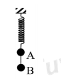 Một lò xo nhẹ có độ cứng \(100N/m\), đầu trên của lò xo treo vào một điểm cố định. Vật A có khối lượng \(200g\) được treo vào đầu dưới của lò xo. Vật B có khối lượng \(200g\) treo vào vật A nhờ một sợi dây mềm, nhẹ, không dãn và đủ dài để khi chuyển động vật A và vật B không va chạm nhau (như hình bên). Ban đầu giữ vật B để lò xo có trục thẳng đứng và dãn \(12cm\) rồi thả nhẹ. Lấy \(g = 10m/{s^2} = {\pi ^2}\). Quãng đường vật A đi được tính từ lúc thả vật B đến khi vật A dừng lại lần đầu là