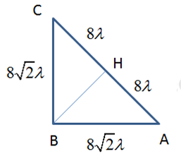 Ở mặt nước có hai nguồn kết hợp đặt tại hai điểm \(A\) và \(B\), dao động cùng pha theo phương thẳng đứng, phát ra hai sóng có bước sóng \(\lambda \). Khoảng cách \(AB = 8\sqrt 2 \lambda \). \(C\) là điểm ở mặt nước soa cho \(ABC\) là tam giác vuông cân tại \(B\). Trên \(AC\) số điểm dao động với biên độ cực đại cùng pha với các nguồn là