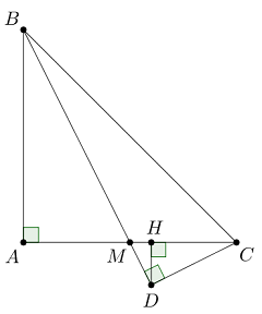 Cho tam giác \(ABC\) vuông cân tại \(A,\) đường trung tuyến \(BM.\) Gọi \(D\) là hình chiếu của