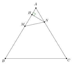 Cho tam giác \(ABC\) đều. Trên cạnh \(AB,\,\,AC\) lần lượt lấy các điểm \(M,\,\,N.\) Chứng minh