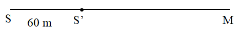 Một nguồn âm điểm S phát âm đẳng hướng với công suất không đổi trong một môi trường không hấp thụ và không phản xạ âm. Lúc đầu, mức cường độ âm do S gây ra tại điểm M là L (dB). Khi cho S tiến lại gần M thêm một đoạn 60 m thì mức cường độ âm tại M lúc này là L + 6 (dB). Khoảng cách từ S đến M lúc đầu là