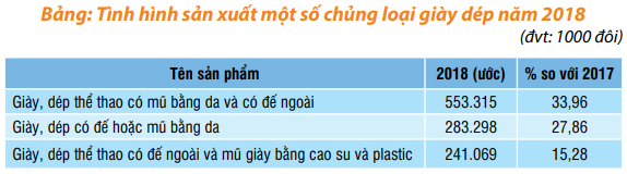 Theo ước tính năm 2018 số giày, dép có đế hoặc mũ bằng da là bao nhiêu đôi?
