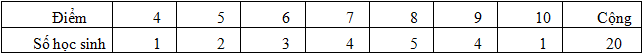 Cho bảng số liệu điểm bài kiểm tra môn toán của 20 học sinh.
