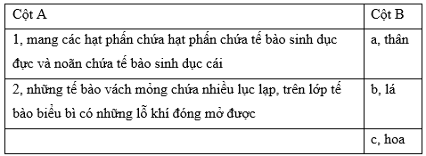 Nối các đặc điểm cấu tạo ở cột A với các bộ phận tương ứng ở cột B cho phù