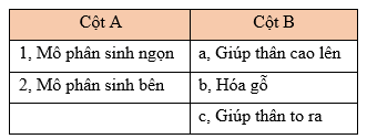 Nối tên thành phần cấu tạo thân ở cột A với chức năng tương ứng ở cột B:
