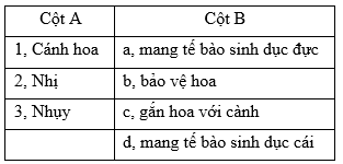 Nối tên bộ phận của hoa ở cột A với chức năng tương ứng ở cột B: