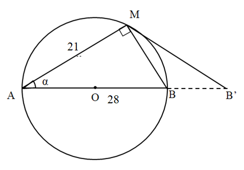 Trên mặt nước tại hai điểm A, B cách nhau 28 cm, người ta đặt hai nguồn đồng bộ, dao động điều hòa theo phương thẳng đứng tạo ra sóng kết hợp với bước sóng 2 cm. Coi biên độ sóng không đổi khi truyền sóng. Gọi M là điểm trên mặt nước sao cho MA = 21 cm, M thuộc đường tròn đường kính AB. Phải dịch B dọc theo phương AB và hướng ra xa A một khoảng nhỏ nhất bằng bao nhiêu để M là cực đại?