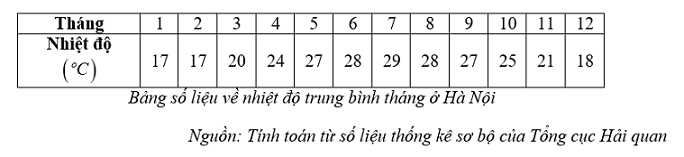 Ta tính tổng nhiệt độ các tháng lại rồi chia cho 12 để tìm nhiệt độ trung bình năm của Hà Nội.