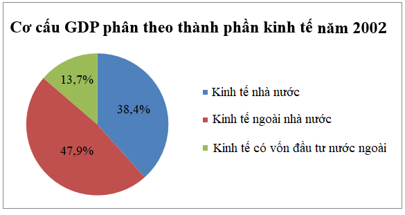 Theo thống kê, GDP của Việt Nam năm 2002 ước đạt 35,06 tỉ USD, trong đó cơ cấu GDP phân theo thành phần kinh tế được cho trong biểu đồ sau: