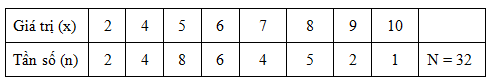 Điểm bài kiểm tra môn Toán học kì I của 32 học sinh lớp 12C được ghi trong bảng sau: