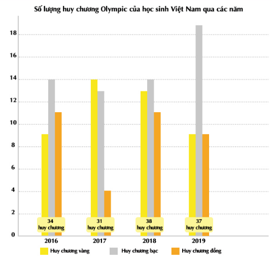 Số lượng huy chương Olympic của học sinh Việt Nam (2016-2019)
