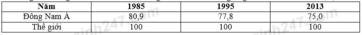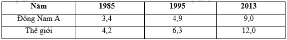 Cho bảng số liệu: Sản lượng cao su của khu vực Đông Nam Á và thế giới giai đoạn 1985 –